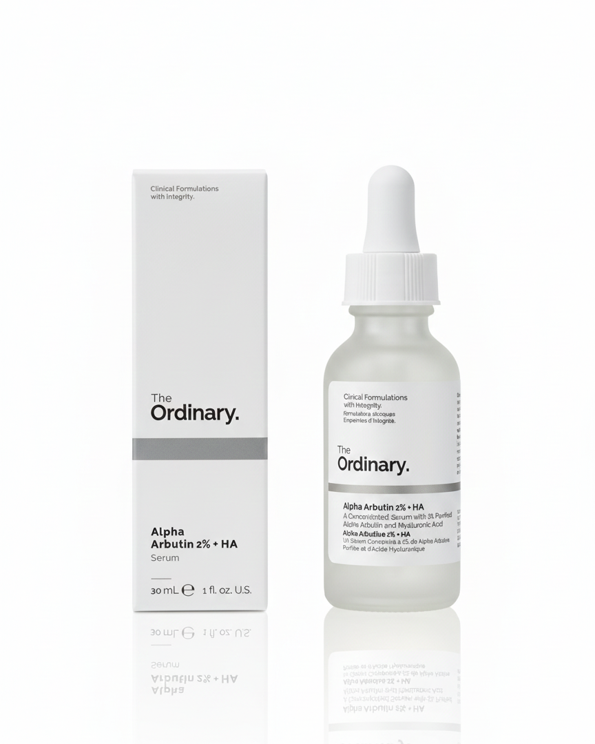 مصل مركّز بتركيز 2% Alpha Arbutin مع حمض الهيالورونيك لترطيب داعم ومظهر بشرة أكثر تجانسًا ولمعانًا صحيًا.